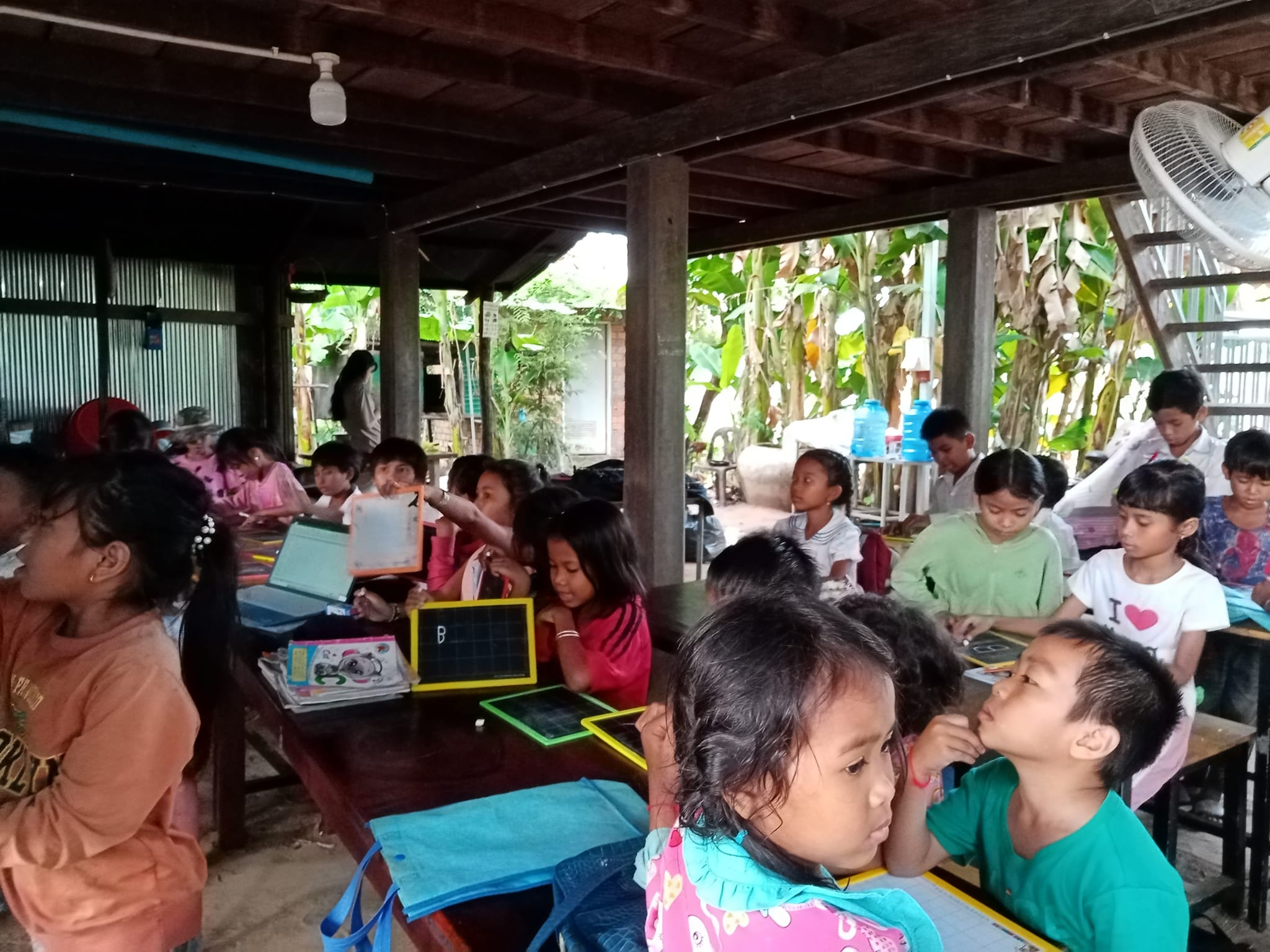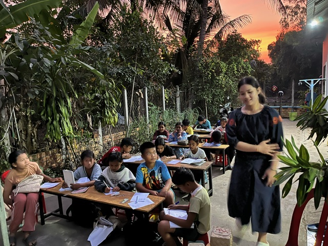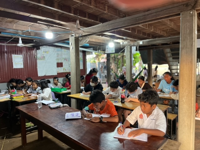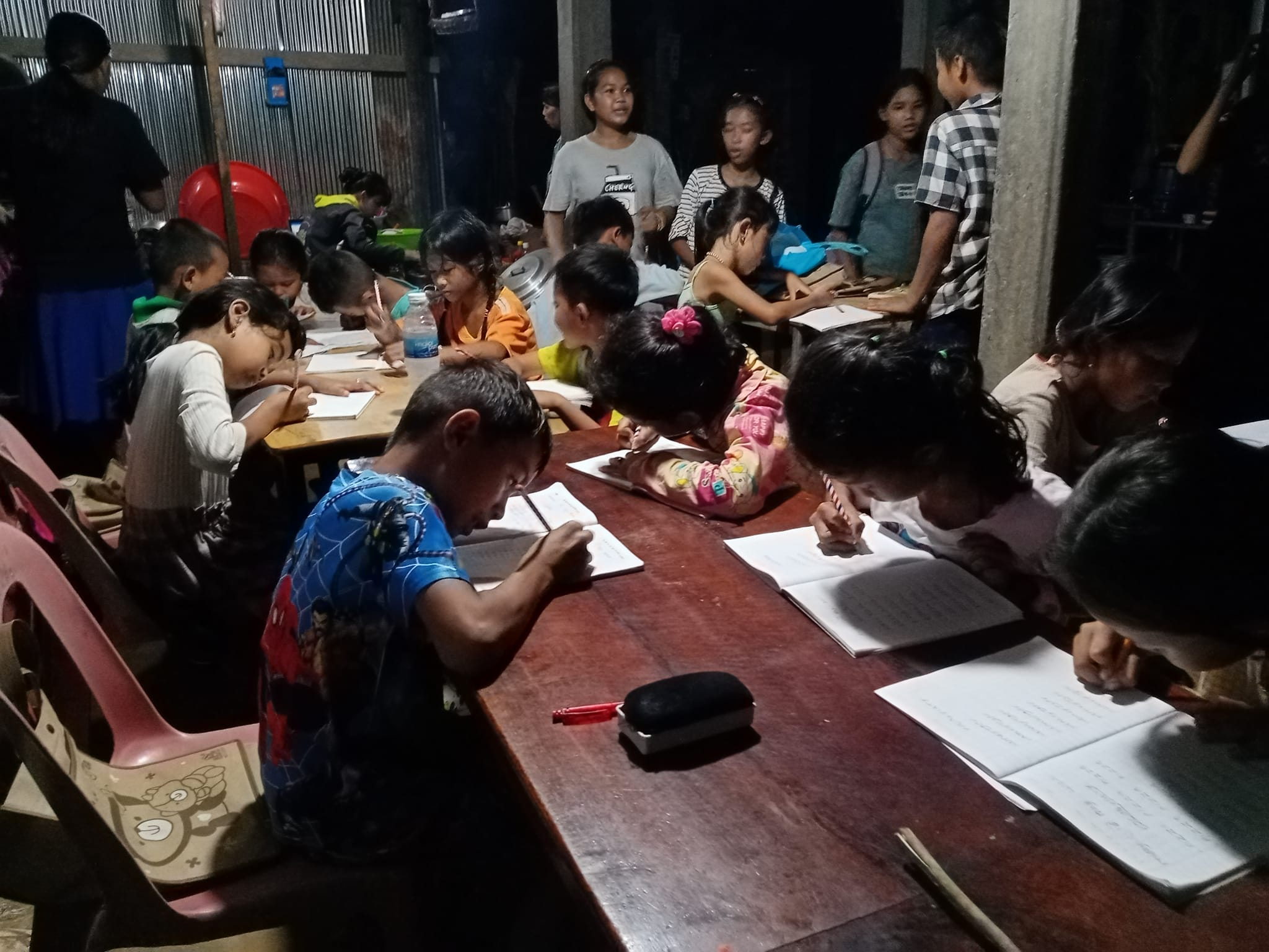 The English classes provide students from 4 year old upwards of all levels to improve their English skills. The teacher Han Rin has reached advanced English at University and she is very committed to transferring her knowledg to the kids in her village. Classes run Mon -Fri, each class has about 20 kids and there are 8 classes a day so up to 160 kids turn up to learn English each day. Demand for English learning is actually much greater but the school simply doesn't have the resources at the moment to take more kids so we have many local kids waiting for more classes if we can get the resources. The classes run from 3:00pm to 8:30pm and some of the older students who have reached pre-intermediate level help Han by teaching basic level classes. So the school is kids helping kids, the whole community is united together.